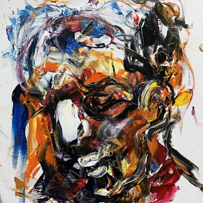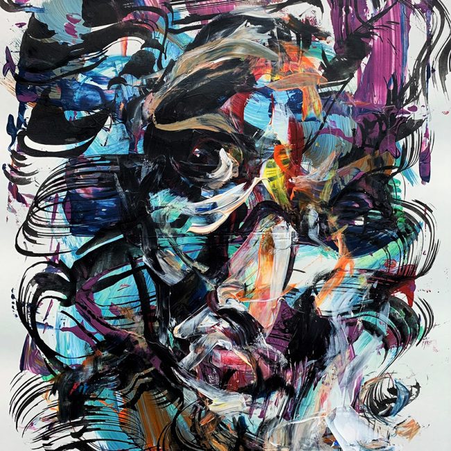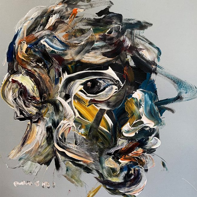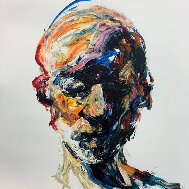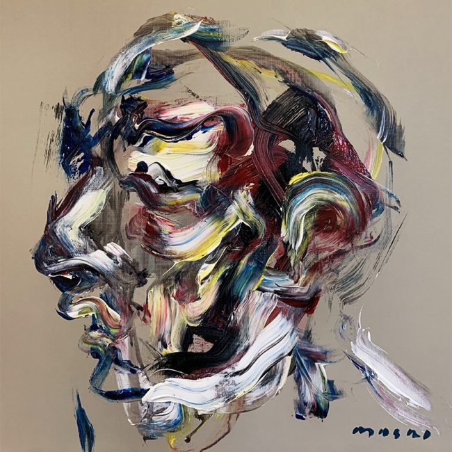 Masri says that the self portraits are key to understanding his art. He chooses this genre as though a medium, unleashing its full artistic potential to immortalize not just his own likeness but what he conceptualizes and feels: frequently, the essence of other individuals in moments of transcendence. Through endless new manifestations of the face he knows best, he conveys his awareness of the universe that encompasses even the “twilight zone” that he has witnessed, enduring vitality that can alter the apparent, often deadening “real world.”