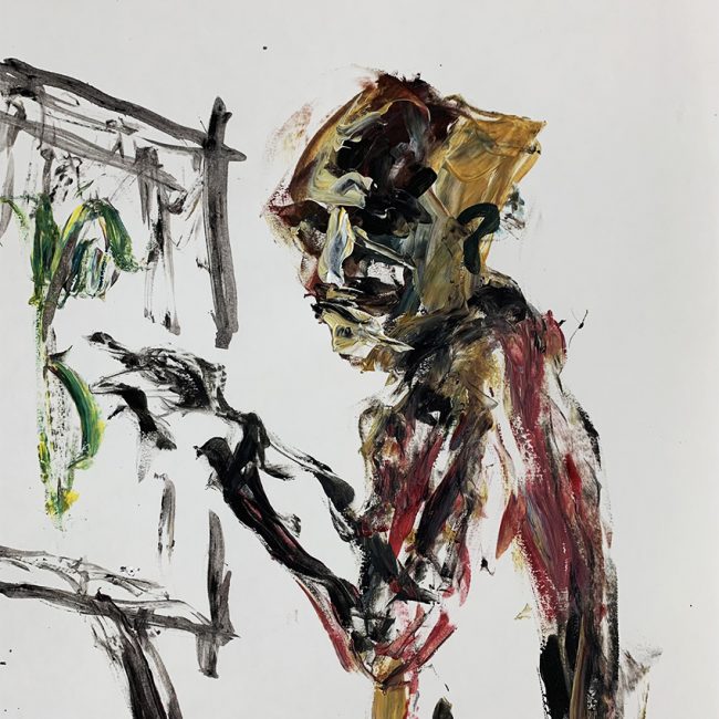 In terms of other masters of self portraiture, Masri’s larger-than-life persona can be imagined in Duerer’s winged Melancholy (1514), but with the artist resolutely acting the part and taking up all the tools at his disposal to burst through the psychological and spiritual constraints.